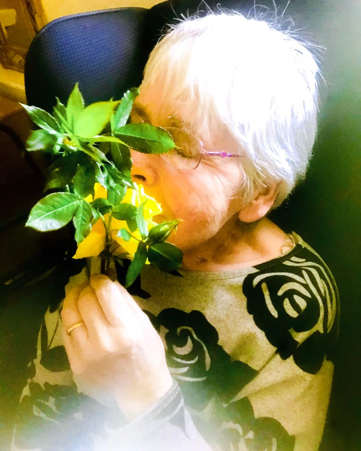 We haven’t told Mum of her loss as we know it would be too much for her to take. She would be heartbroken, only to forget and ask after her sister just as quick; just as she does for Dad. I can’t bear to repeatedly break her heart. On such a sad day that unexpected late blossom on a tree that we thought was done for the year seemed poignant. I decided there and then to pick this rose and take it to Mum; as silly as it sounds it felt like my aunts way of saying one last goodbye.